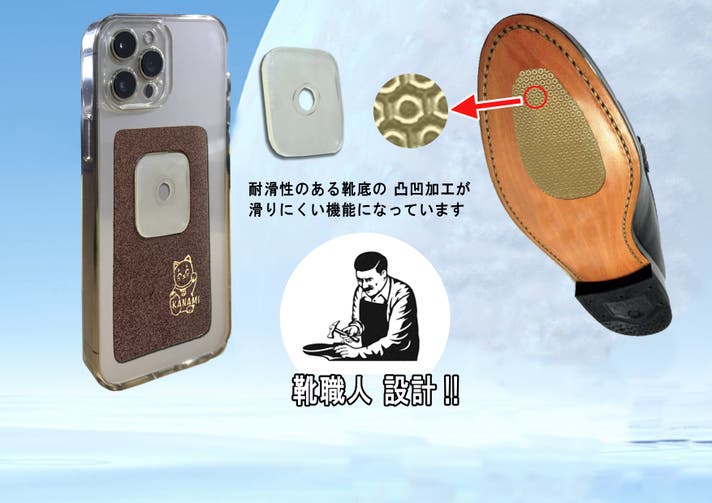 - 靴職人による専門的な設計。スマートフォンに適用、すべりを止める。