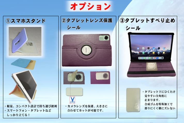 【オプション価格】「スタンド」、「タブレットレンズ保護」「すべり止め保護シール」