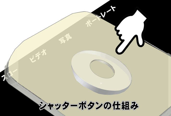 ・スマホ正面 シャッターボタンに合わすと安定感あるシャッターボタン機能になります。