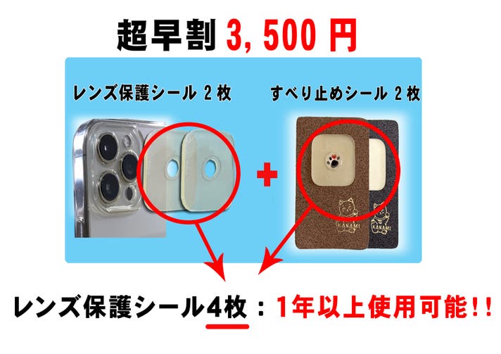 【超早割16%OFF】 「カメラレンズ保護シール2枚」「すべり止めゴムシール2枚」