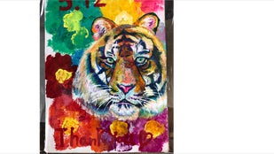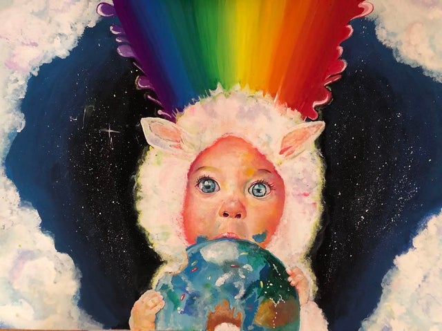 ●キャンバスF0号(サイズ 180X140)にアクリル絵の具で描いた絵とお礼のお手紙を添えさせていただきます。