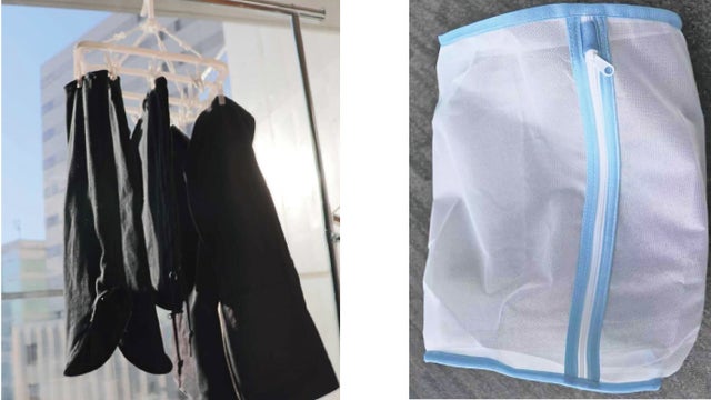 ▽ネットに入れて簡単洗濯。ピンチハンガーで干せる。細分化によって乾きが早い。汚れた場合、そのパーツだけ洗濯すれば良い。つまり省エネ/省スペース。