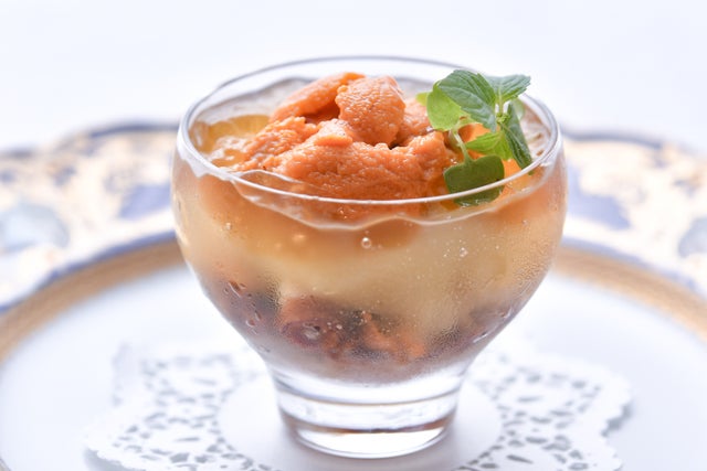 ・北海道産・エビのコクテイユ 生雲丹とキャビアを合わせて