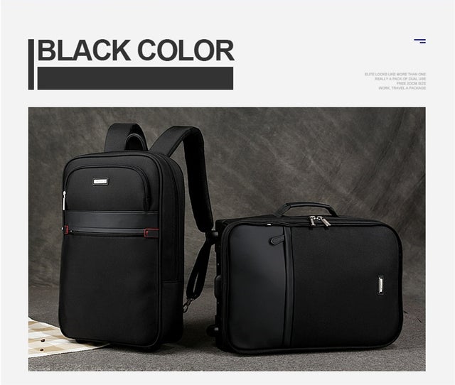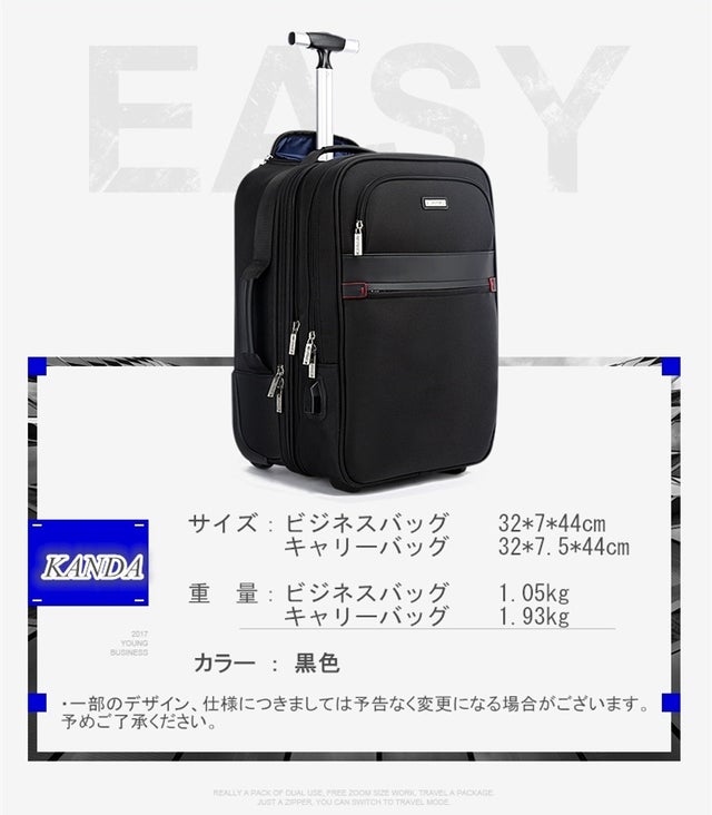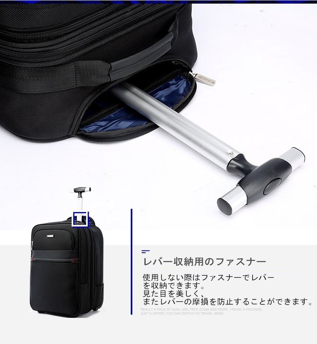 一つのファスナーで2つのバッグにセパレ-ト可能。出張する際は、キャリーバッグで。普段の仕事には、ビジネスバッグで。
