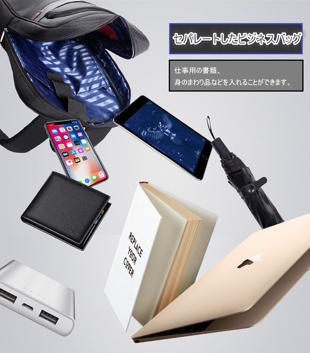 セパレートしたビジネスバッグには、仕事用の書類、身のまわり品などを入れることができます。