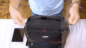 KANDAの防犯機能はバックの裏側に隠されております。裏側に隠しファスナーがあり、財布や携帯など重要な物を入れることができ、スリに盗まれる心配も少なくできます。