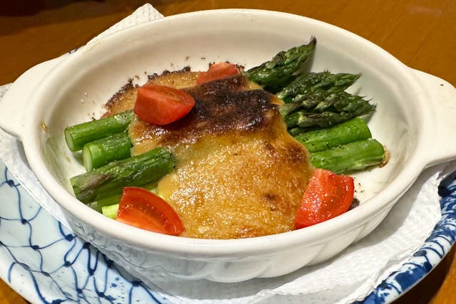 3.耐熱皿にアスパラと味噌をかけ、焼き色が付くぐらい焼いたら出来上がりです