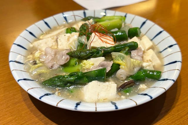 4.炒め上がったら(A)を入れ、ひとにだちしたら、豆腐を入れ水溶き片栗粉でとろみをつける
