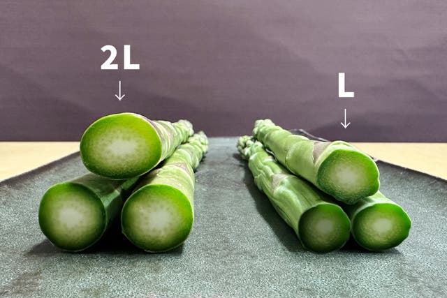 JA道北なよろは、お客様にお届けするアスパラガスを大きさごとにランク分けしています。その中でも今回、リターン品でご用意させていただくのは、