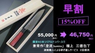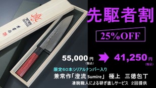 - 「刃物の町」岐阜県関市の包丁職人による入魂の一振り。60本限定シリアルナンバー入り。