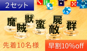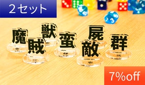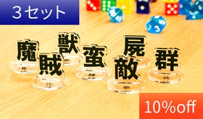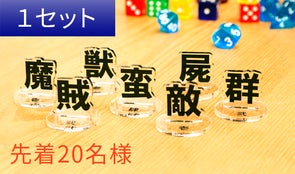 今回の制作文字(魔・賊・獣・蛮・屍・敵・群)以外の、支援者さまご指定の漢字を1セット(1文字×5個)お作りいたします。(台座は印刷なしのクリアになります)