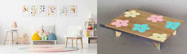 天板をキャンバスのように自由な発想で絵を描いたり、ご自分の好きな色・デザインすることで世界に一つだけのテーブルとして、さらに愛着を持って使っていただけると思います。
