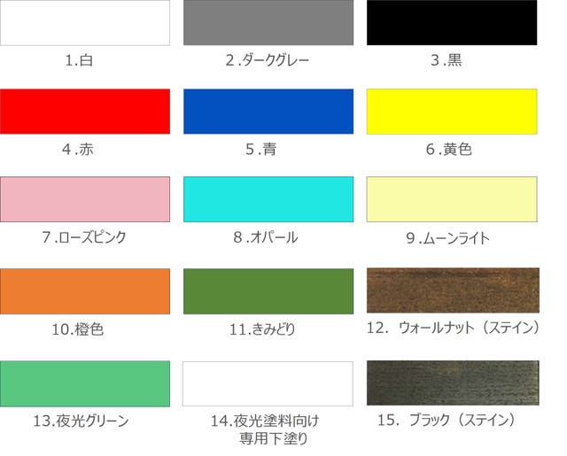 ※12.ウォールナットと15.ブラックは木目を生かす着色(ステイン)なります。