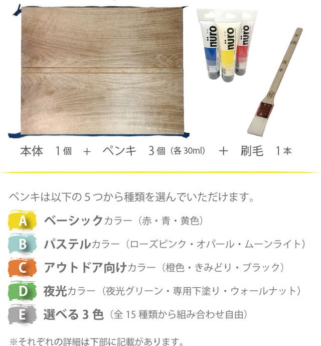 ・ペンキ3種は5つのセットからお選びいただけます。