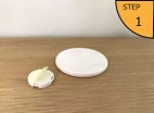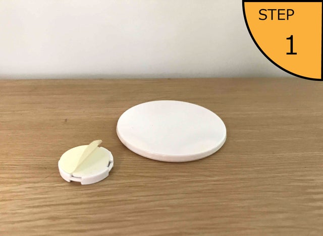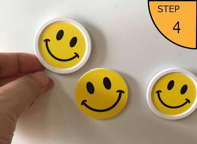 『ケース入りかんたんマグネット』の両面テープ側を接着面が直径約20㎜あるマスコット等に接着してオリジナルのマグネットを作り、ホワイトボード等の磁力がつく対象物にくっつける。