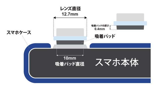 独自開発した吸着ナノパッドにより、簡単にスマホに取り付け可能。