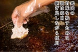 熟成した秘伝のタレが出来上がったら、次は鶏肉の出番。鶏肉は厳選した国産のみを使用。脂にも身にも臭みがないので、肉の繊維までしっかり、秘伝のタレの旨みがしみ込んでゆきます。「ありがとう」の感謝の言葉を掛けながらまずは肉にタレを揉み込み、後は丸1日以上かけて、じっくりとタレに漬け込み、肉にタレの味をしみ込ませていきます。