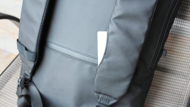 ちなみに、背面にはスマートフォンや財布を収納できる小型のファスナーポケットがあります。電話が鳴ったとしても、スマホの振動が背中に伝わるので、電話や重要な通知を聞き逃す心配はありません。