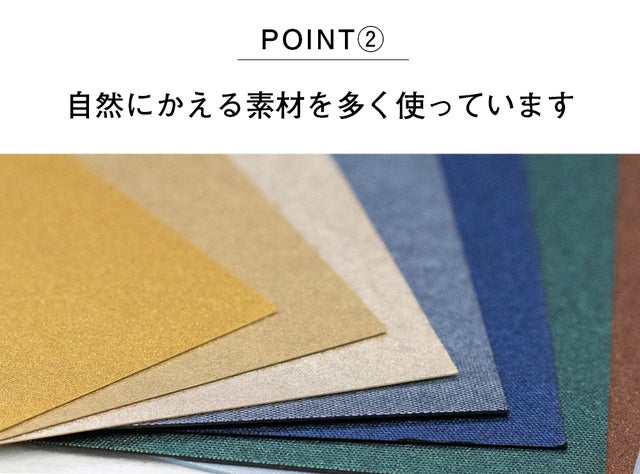 環境に関しての関心が高まる中、日照堂の『karupi』は自然由来の素材である紙をメイン材料に使用しています。自然にかえる素材を多く使っており、環境の配慮をしているのが特徴です。