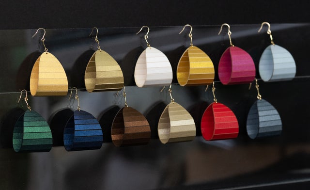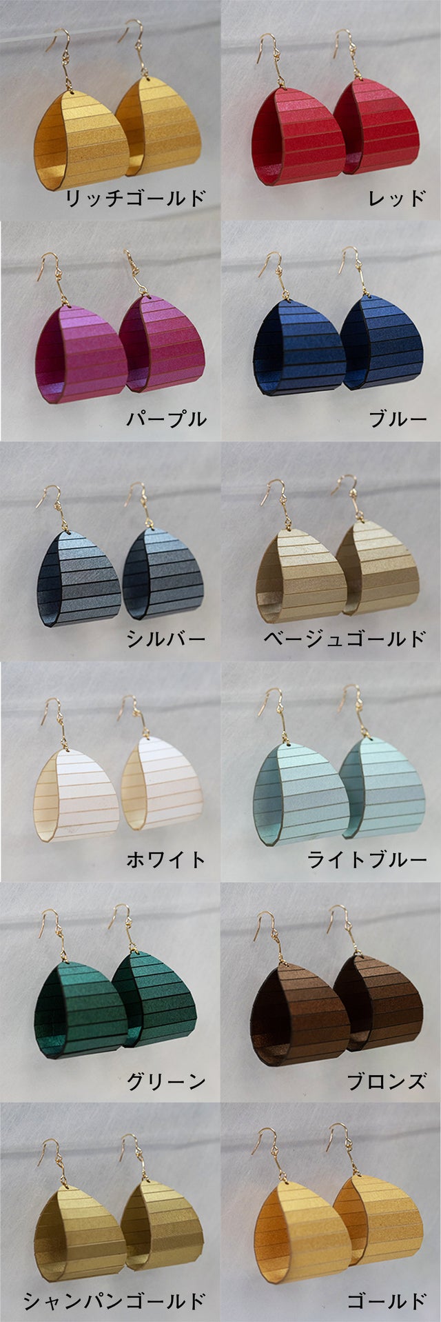 特殊な加工をした紙を内面に挟み込むことで、エコロジーだけでなく、耐久性にも優れた耳飾りになります。
