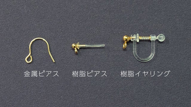 金属ピアスは14kゴールドフィルド。厚い金のプレートで作られています。そのためメッキのように剥がれる心配が少ないです。金属アレルギーの方は樹脂ピアス、樹脂イヤリングを選んでください。