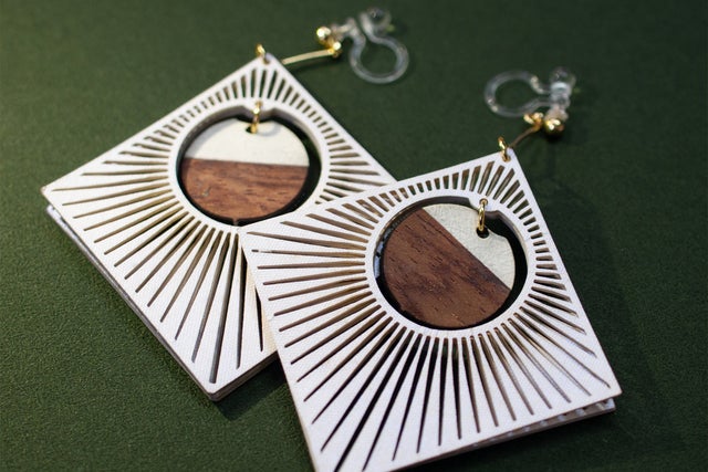 あるチームメンバーが「新たな商品として、日照堂の技術力を集めたアクセサリーがあったら面白いんじゃないか」と話したことがきっかけとなり、封筒を製造する上で培ってきた、紙の裁断、印刷、型抜き、製袋(せいたい)、エンボス加工、箔押し加工、レーザー加工を駆使して、2019年3月頃に”紙と木の耳飾り『karupi』”が誕生しました。
