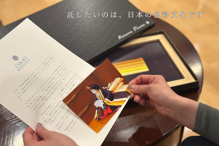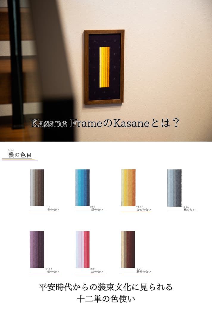 襲(かさね)の色目をコンセプトにした、ほかにはない美しさを纏うウォールアート。Kasane Frameは、作り手のメッセージと共に、作品を解説とともにお納めいたします。“文化を飾る”というコンセプトのもと。