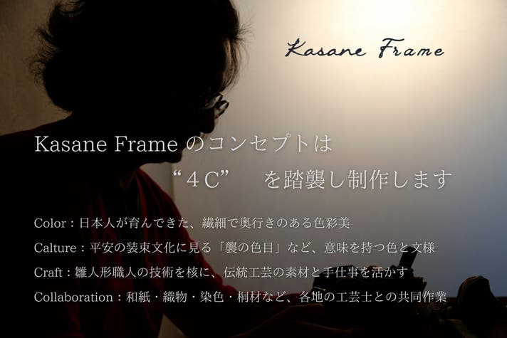 Kasane Frameは、雛人形職人をはじめ、織物・染色・桐箪笥・和紙など、