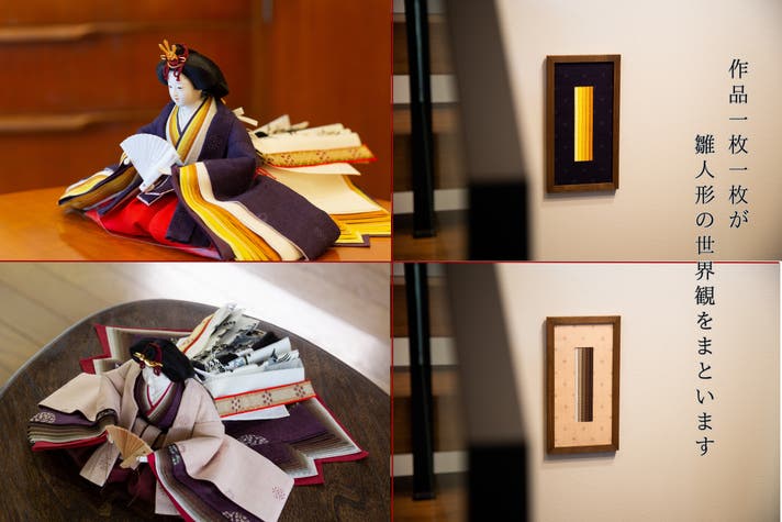各作品には、雛人形職人の色彩感覚と、桐箪笥・結城紬・和紙といった伝統工芸士の手仕事が重なり合い、空間に静謐と奥行きをもたらします。