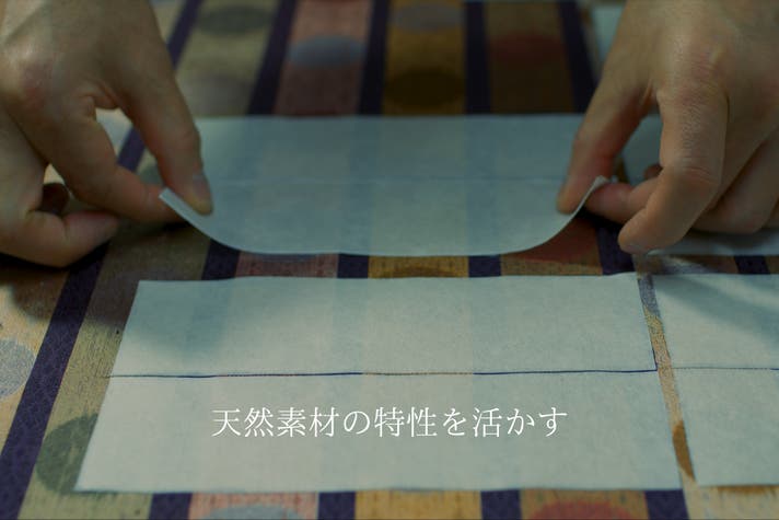 「Kasane Frame」の裏打ちには、雛人形の着物を仕立てる際にも使われる、伝統的な和紙とその技法を用いています。