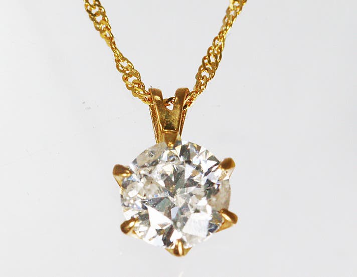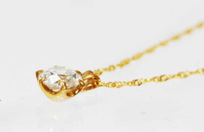 史上最高値を更新し続けている金相場。そんな中、憧れの大粒1ctダイヤモンドを留めたすべてが純金でできたペンダントのご紹介です。ペンダントヘッドはもちろん、チェーンにも純金を使用した贅沢すぎるダイヤモンドペンダントです。
