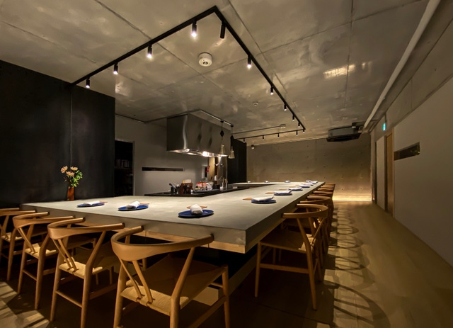 地下とは思えないほど解放感のある、劇場型オープンキッチンの店内