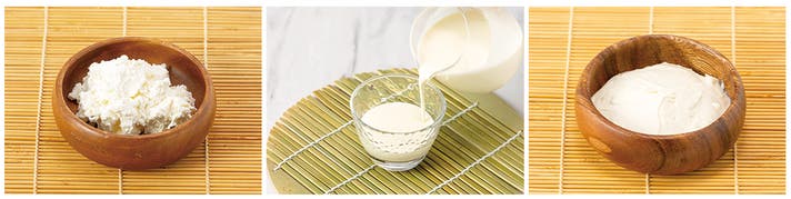 冷蔵庫で8時間解凍するマスカルポーネクリームがとろっと。