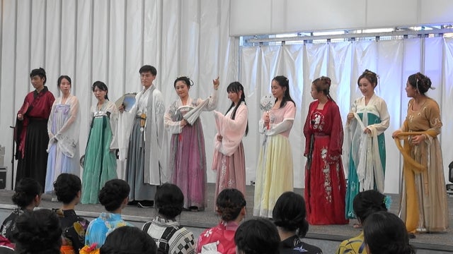 (後方)ファッションショーの学生モデルたち