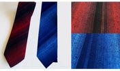 人気の赤と紺のグラデーションが冴える、絣ネクタイです。