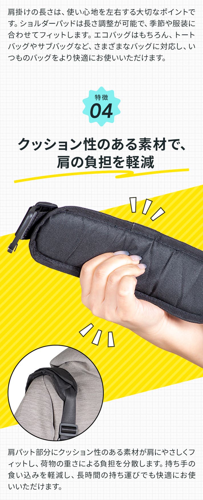 - 重たいエコバッグも肩掛けに変えてラクに持てる肩楽ショルダーパッドで買い物が快適で便利毎日使える