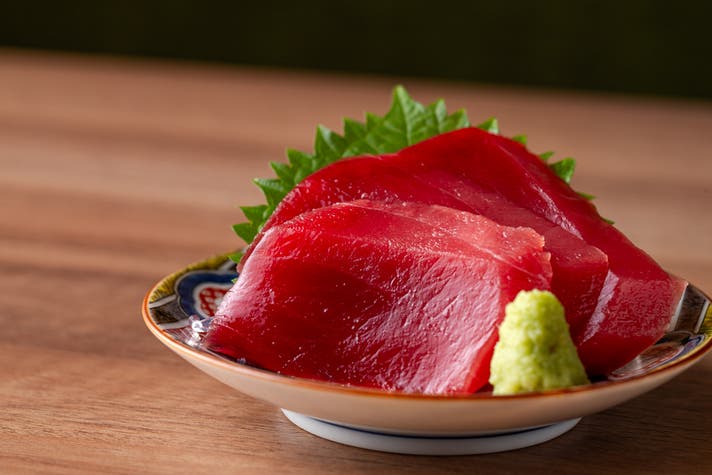 濃厚な旨みとねっとりとした食感が特徴の、天然のインドマグロにこだわり、新鮮な赤身を刺身で召し上がっていただきます。