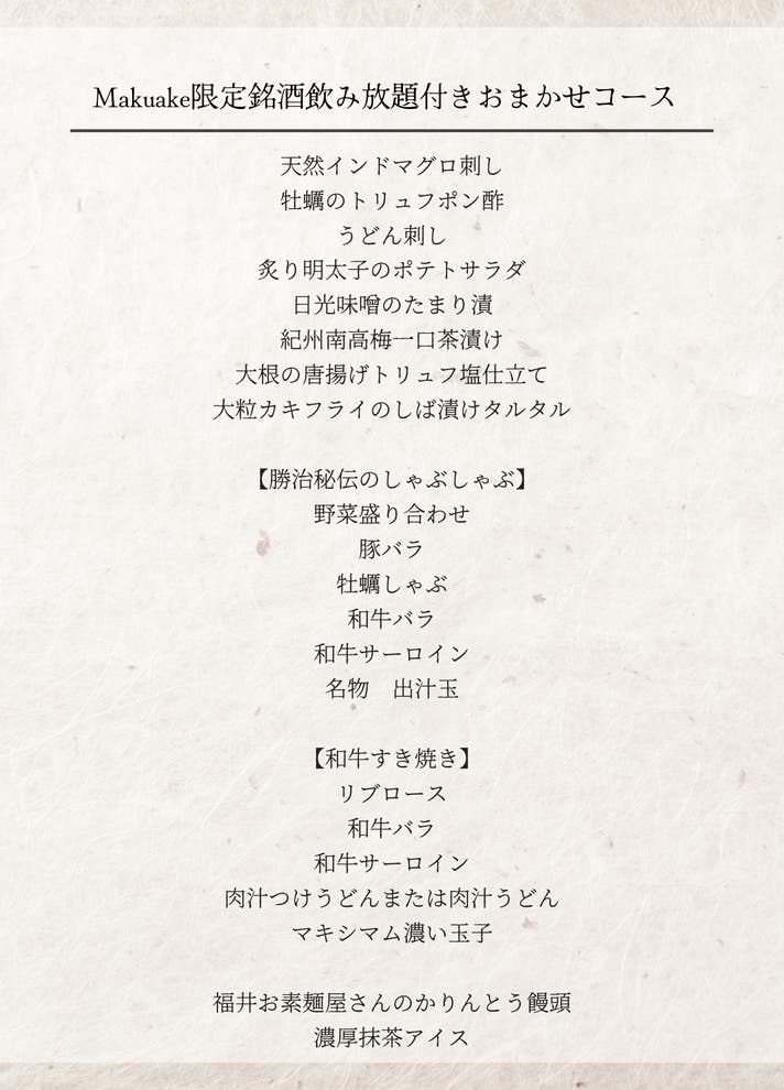 ・Makuake限定銘酒飲み放題付きおまかせコース