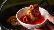 しゃぶしゃぶの出汁に溶き卵を加え、即席の茶碗蒸しのようにしてお召し上がりいただきます。