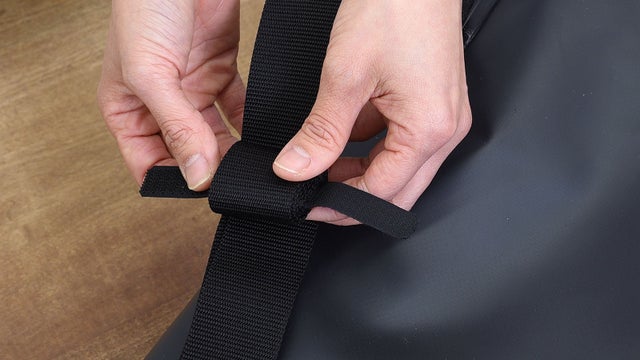 ショルダーの長さを調整し、余分なテープはくるくると巻いて固定できます。