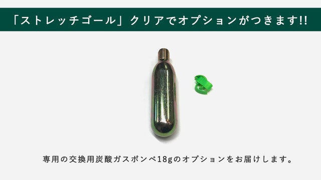 今回のプロジェクトではストレッチゴールを設定しています。応募購入総額3,000,000円達成で、応援者全員に「交換用炭酸ガス18g」を1個お届けします。