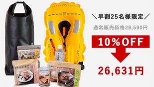 【 早割 10%OFF 25名様限定 ライフジャケット付きドライバッグ+非常食セット】