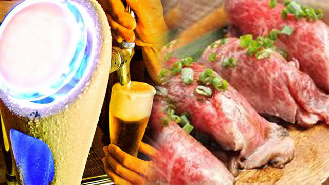 今日はリーズナブルに☆氷点下ビール飲み放題3h1,000円!または、少しリッチに黒毛和牛の肉寿司をお楽しみになるか用途によってお使いください♪