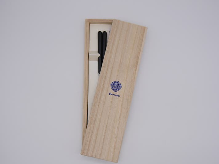お箸と同じ縞黒檀で作られた特製の箸置きを