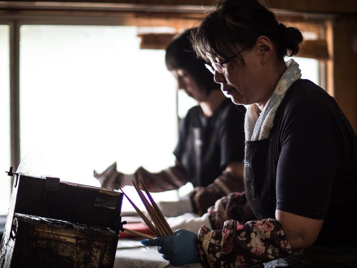 熟練の職人が一膳ごとに丁寧に塗り重ね、