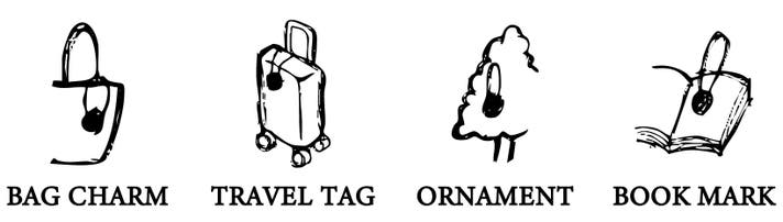 チャームの使用用途としては、バッグチャーム、トラベルタグ、オーナメント、ブックマークでの使用を想定。それらに適したサイズ感として65~75mm角サイズを基本としたボリューム感のサイズ設計をしています。(Sサイズは45~50mm程度)ある程度の大きさがあって、小さすぎない。使い勝手も、ギフトとしての特別感も味わえるようなサイズ感です。