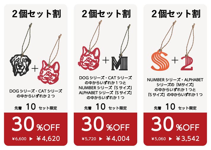 ●DOGシリーズ・CATシリーズの中からいずれか1つとNUMBERシリーズ「Sサイズ」・ALPHABETシリーズ「Sサイズ」の中からいずれか1つ[メーカー希望小売価格 5,720円(税込)の30%OFF]