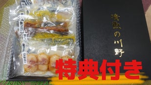 8種類入りの漬け魚セットに、特典をお付けしてお届けします。