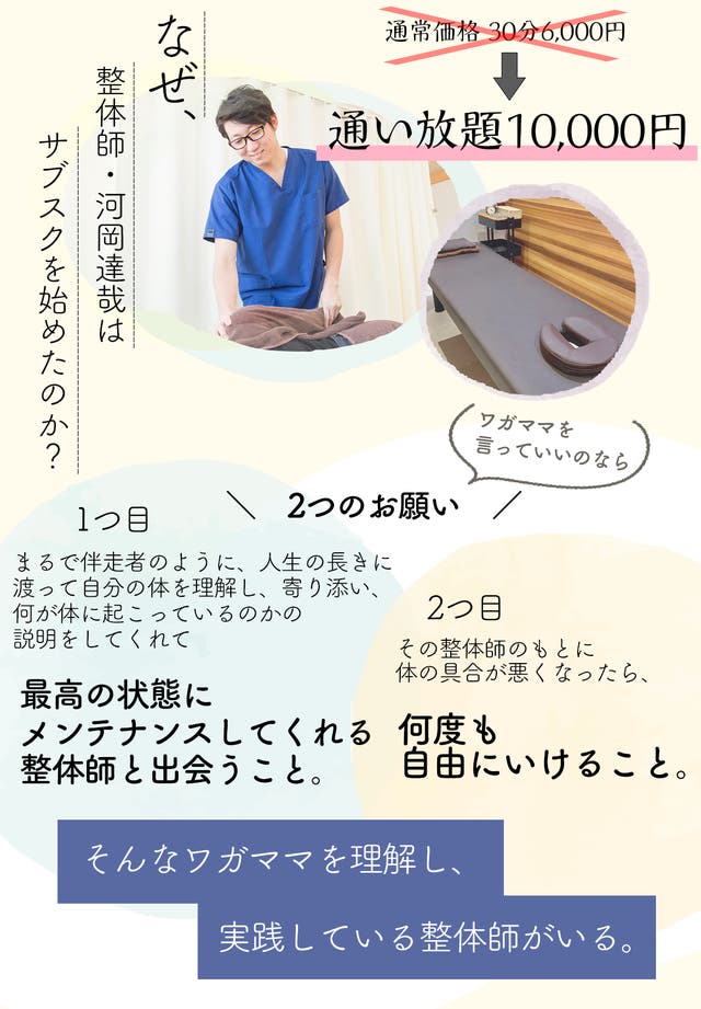 【通い放題】1ヶ月サブスクプラン 30分整体(お着替え含む)+会員権
