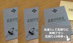 友達3人で瓦割りに挑戦プラン!瓦割り10枚券×3枚+サポーターカード